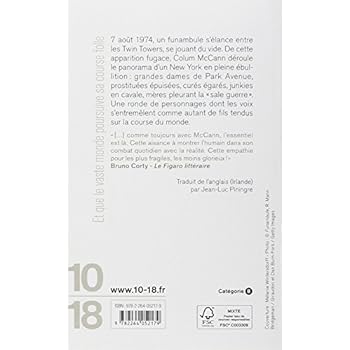 7 août 1974, un funambule s'élance entre les Twin Towers, se jouant du vide. De cette apparition fugace, Colum McCann déroule le panorama d'un New York en pleine ébullition : grandes dames de Park Avenue, prostituées épuisées, curés égarés, junkies en cavale, mères pleurant la " sale guerre ". Une ronde de personnages dont les voix s'entremêlent comme autant de fils tendus sur la course du monde. " [...] comme toujours avec McCann, l'essentiel est là. Cette aisance à montrer l'humain dans son combat quotidien avec la réalité. Cette empathie pour les plus fragiles, les moins glorieux ! " Bruno Corty, Le Figaro littéraire Traduit de l'anglais (Irlande) par Jean-Luc Piningre